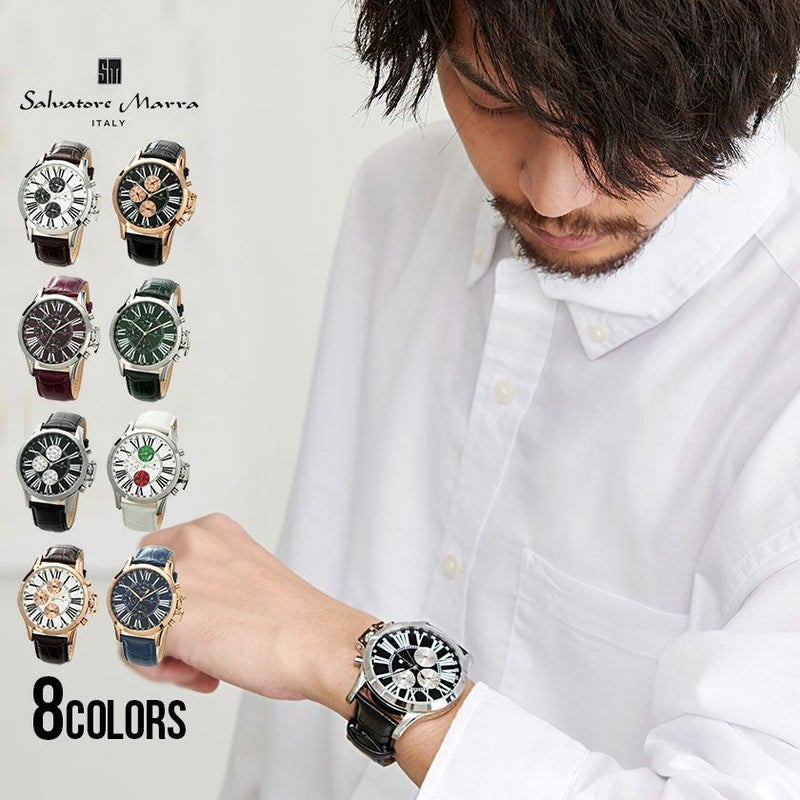 腕時計 メンズ ウォッチ 時計 Salvatore Marra サルバトーレマーラ 革ベルト アナログ クオーツ 大きめ ビッグフェイス 文字盤 防水 日付 曜日 ケース ブランド シルバー ブラック ピンクゴールド ホワイト ブルー グリーン 金 銀 黒 白 青 緑 カジュアル きれいめ 大人 おしゃれ 20代 30代 40代 男性 男 父の日 父の日ギフト 父の日プレゼント メンズファッション 東京 プレゼント 誕生日 記念日 贈り物 ギフト