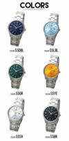 オールステンレスの堅牢なボディに宿る、サンレイ加工の鮮やかな文字盤カラーバリエーションは、あらゆるシーンで輝きを放ちます。