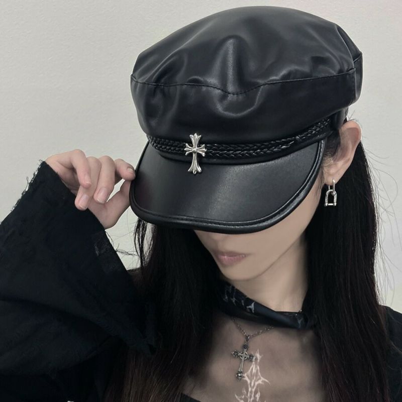 キャスケット メンズ 帽子 ブランド 大人 レザー 合成革皮 リボン クロス 十字架 きれいめ キレイめ 大人 原宿系 モード系 ストリート ストリート系 ストリートファッション 韓国 韓国系 韓国ファッション おしゃれ モノトーン ファッション 大きいサイズ 大人 カジュアル 春 夏 秋 冬 下北沢 下北系 フリーサイズ 男性 男 父の日 父の日ギフト 父の日プレゼント 20代 30代 40代 メンズファッション 東京 プレゼント 誕生日 記念日 贈り物 ギフト