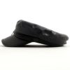 柔らかなシルエットに映えるメタルクロスと、ツヤ感のあるレザー調リボンが、ダークで上品な雰囲気を演出します。