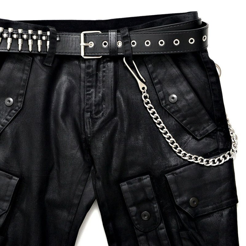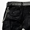 ベルトループ、財布につけて腰回りにアクセントをプラスしてV系パンク系からストリート系までスタイルを選ばず合わせやすくなっているのでこれ一つでも勿論様になりますが、ベルトやキーリング、キーホルダー、ファーのしっぽなどを重ね付けすることでよりジャラジャラ感を演出して今っぽい平成風グランジY2Kスタイルを楽しんでもかっこいいです。