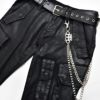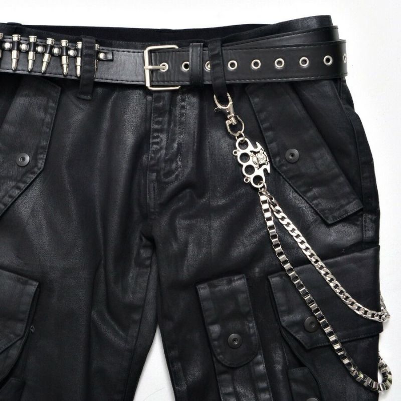 ベルトループ、財布につけて腰回りにアクセントをプラスしてV系パンク系からストリート系までスタイルを選ばず合わせやすくなっているのでこれ一つでも勿論様になりますが、ベルトやキーリング、キーホルダー、ファーのしっぽなどを重ね付けすることでよりジャラジャラ感を演出して今っぽい平成風グランジY2Kスタイルを楽しんでもかっこいいです。