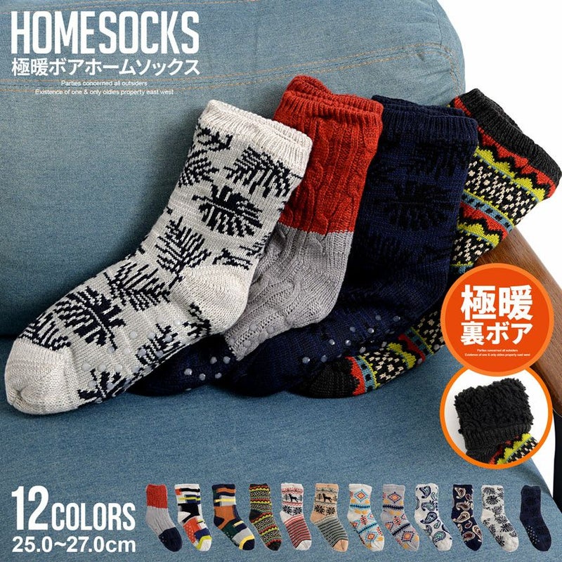 ルームソックス ホームソックス メンズ 靴下 ソックス ボア 暖かい ハイソックス あったか 防寒 厚手 総柄 おしゃれ もこもこ 秋 冬 軽量 滑り止め 25.0 25.5 26.0 26.5 27.0 カジュアル ブラック グレー ホワイト ベージュ グリーン ネイビー 黒 白 紺 緑 男性 男 父の日 父の日ギフト 父の日プレゼント 20代 30代 40代 メンズファッション 東京 プレゼント 誕生日 記念日 贈り物 ギフト