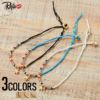 落ち着いた色の紐部分とカラフルなビーズやワンポイントについた星のチャームとの相性が絶妙なアンクレット。