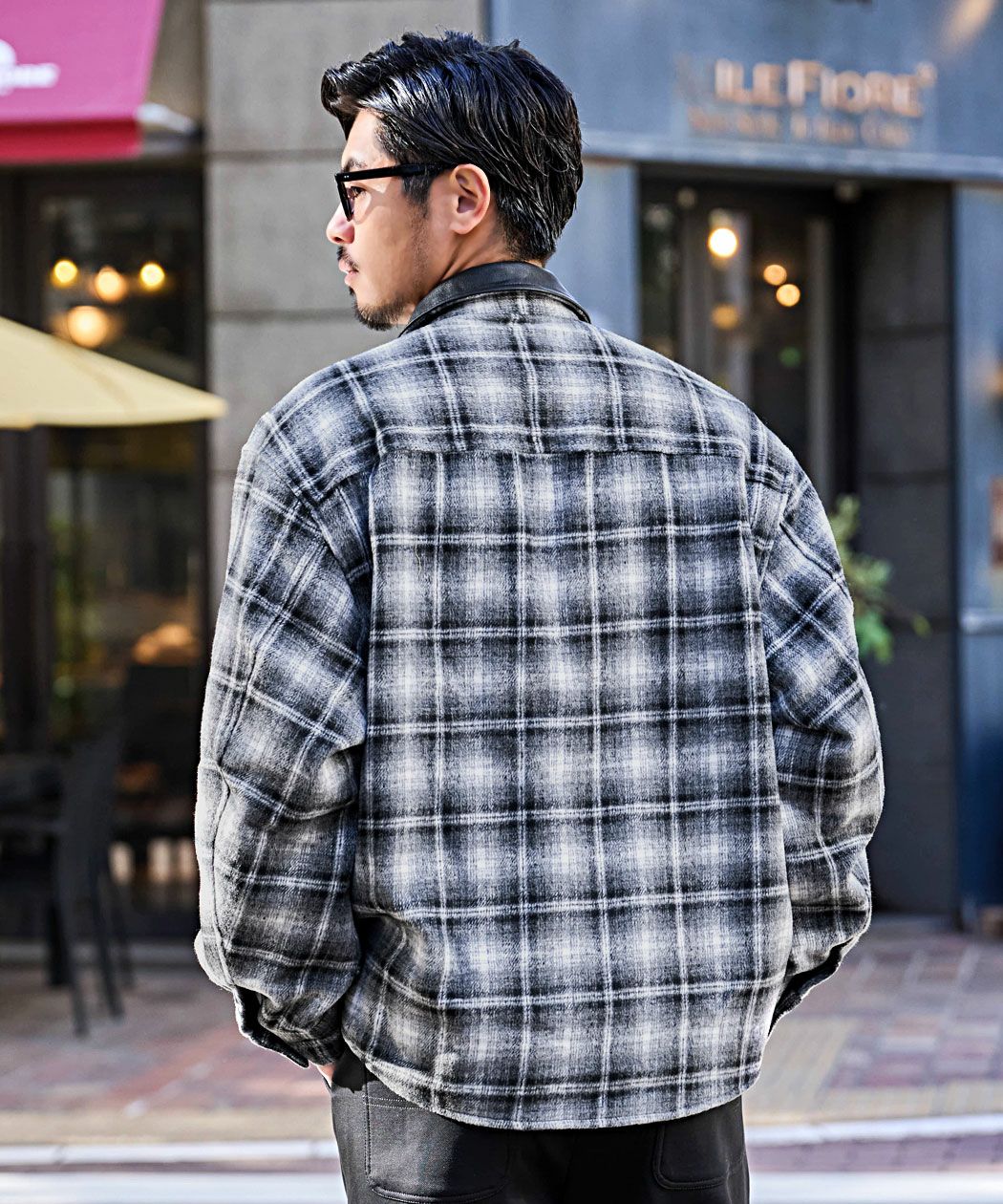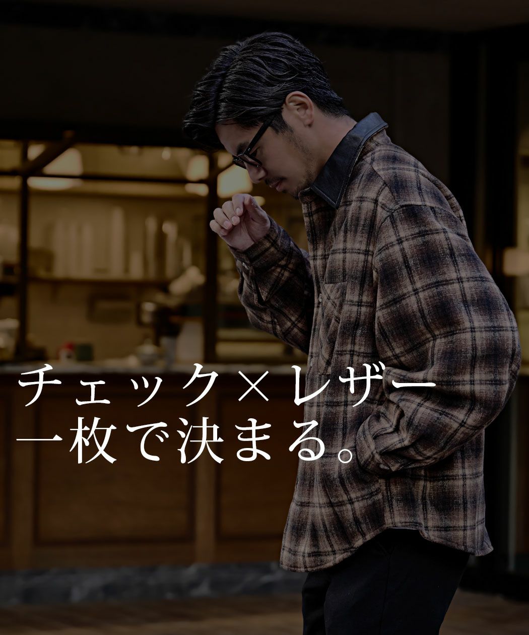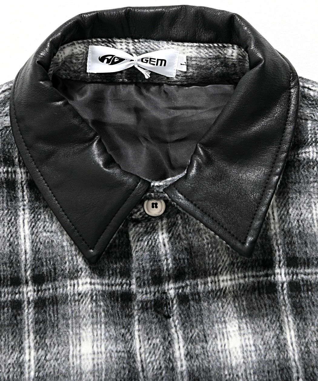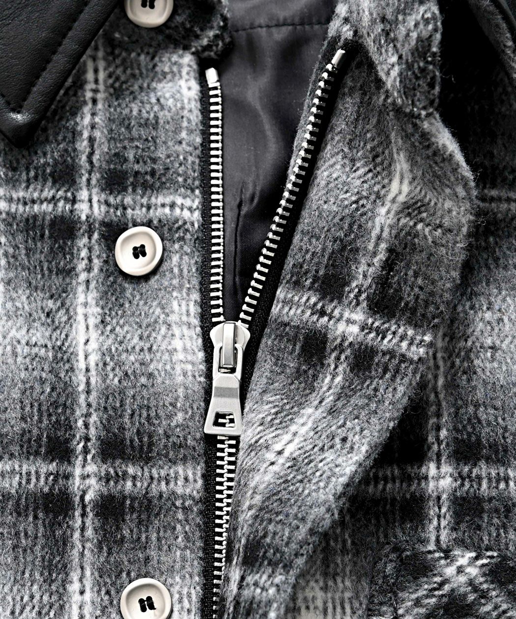 A'gem【エージェム】PUレザー襟オンブレチェックジャケット/全2色