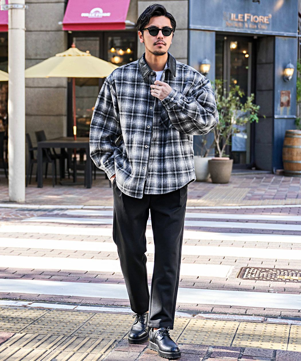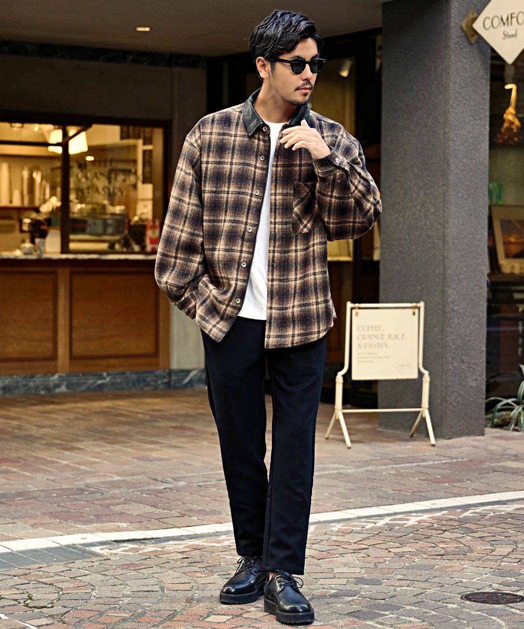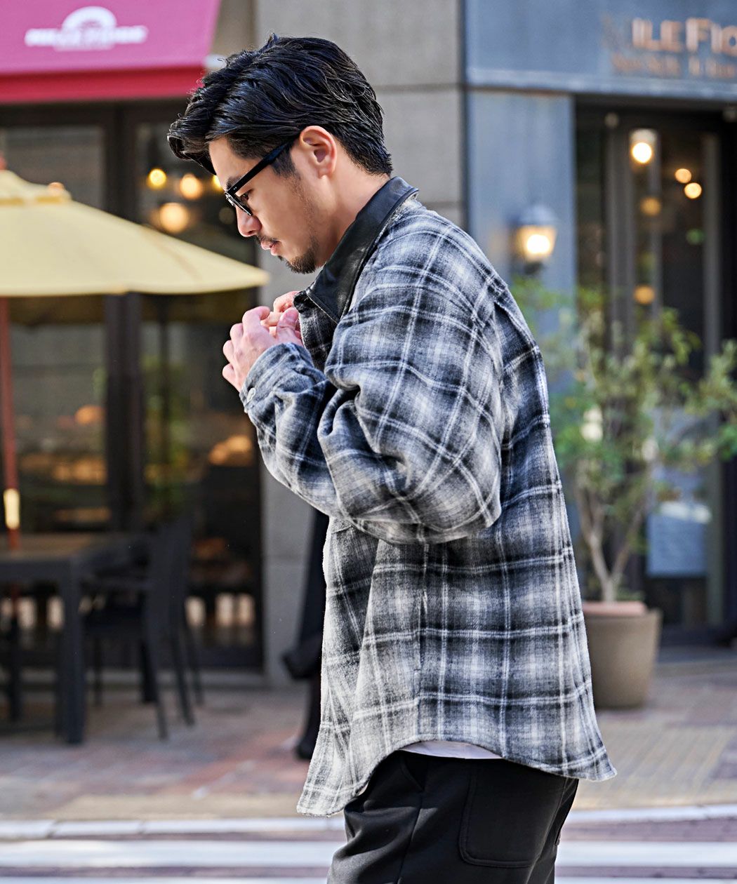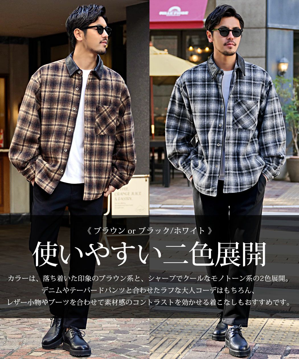 A'gem【エージェム】PUレザー襟オンブレチェックジャケット/全2色