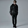 複雑な切り替えデザインや裾の切りっぱなし、厚塗りのグリッター加工を加えることでグランジ感を表現した厚手デニムを使ったジャケットが登場。