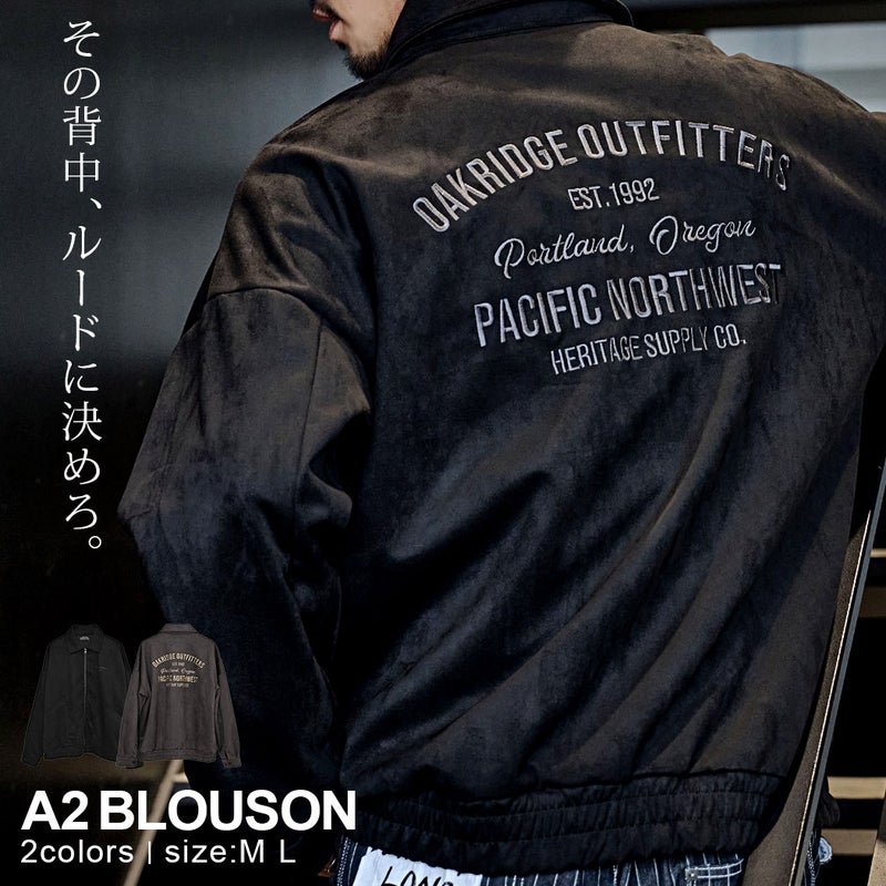 滑らかな肌触りと絶妙な光沢が魅力のフェイクスウェード素材を使用したA2ブルゾン。