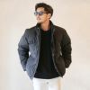 冷たい冬の風を防いでくれるスタンドネック仕様の中綿ジャケット。