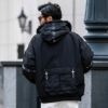 ファイヤーマンバックルや、フードや両袖のハトメテープ、バックポケットをあしらった大人の遊び心くすぐるデザイン。