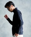 スタンドネック仕様が首元をシャープに見せ、全体の印象を引き締めます。