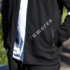 ブラックとホワイトで切り替えた印象的なデザインの長袖ジャケット。