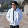 全体に凹凸感のあるジャガード織りでデザインした遊び心をくすぐる総柄ブルゾン。