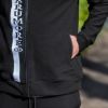 フロントのジップサイドにロゴラインテープを配置し、印象的なスタイルを演出。