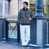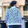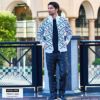 ジャガード生地でロゴを全体にほどこしコーデのアクセントにしたフルジップジャケット。