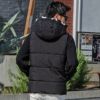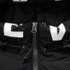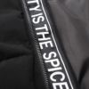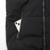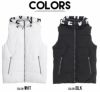 シンプルなボディカラーに大きなロゴが大胆に施されたフード部分が特徴的なダウンベスト。