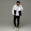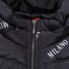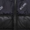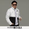 程よい光沢感が魅力のロゴ総柄切り替えデザインのスタイリッシュな中綿ジャケット。