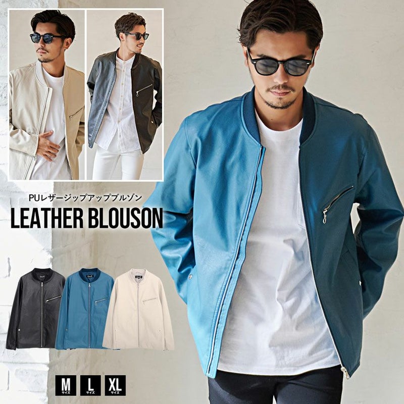 ソフトで肌なじみの良いPUレザーを使用したジップブルゾン。