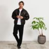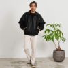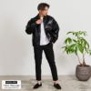 ほどよい生地の厚さと本革のような滑らかな風合いが魅力的な合皮生地を使用したジャケット。