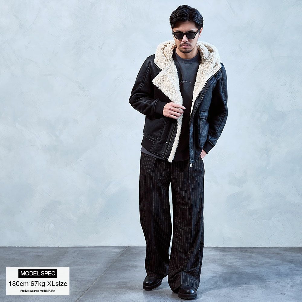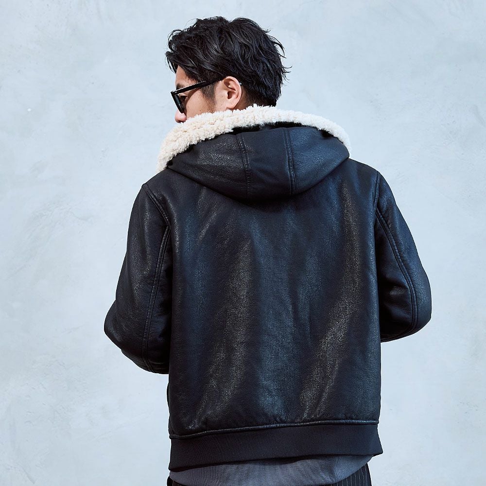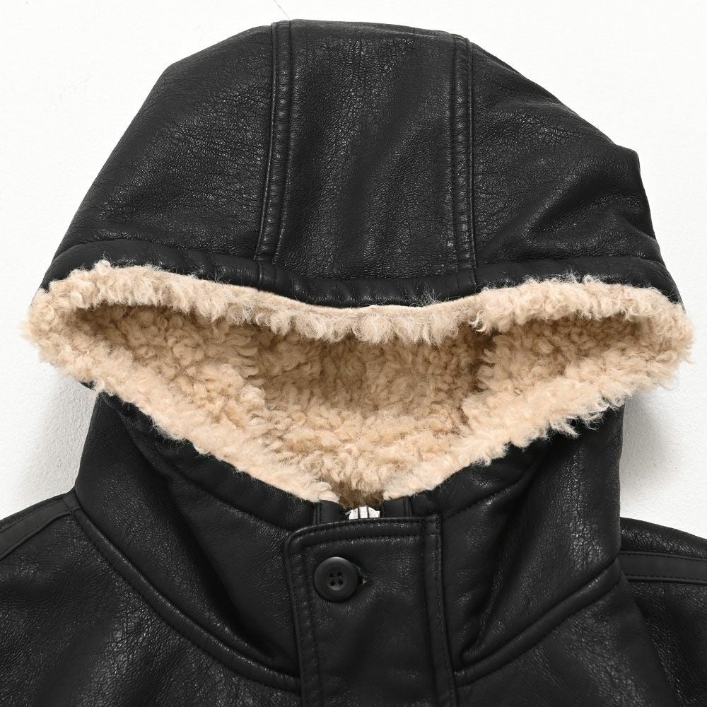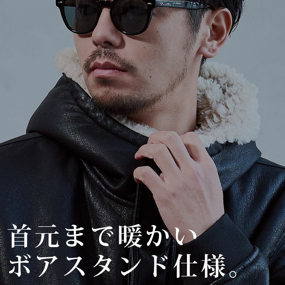 A'gem【エージェム】フード付き裏ボアPUレザージャケット/全1色