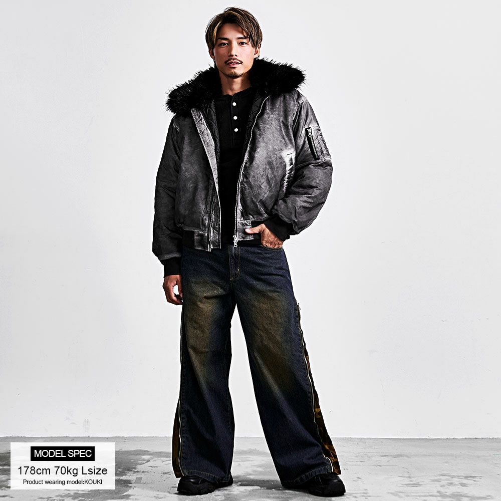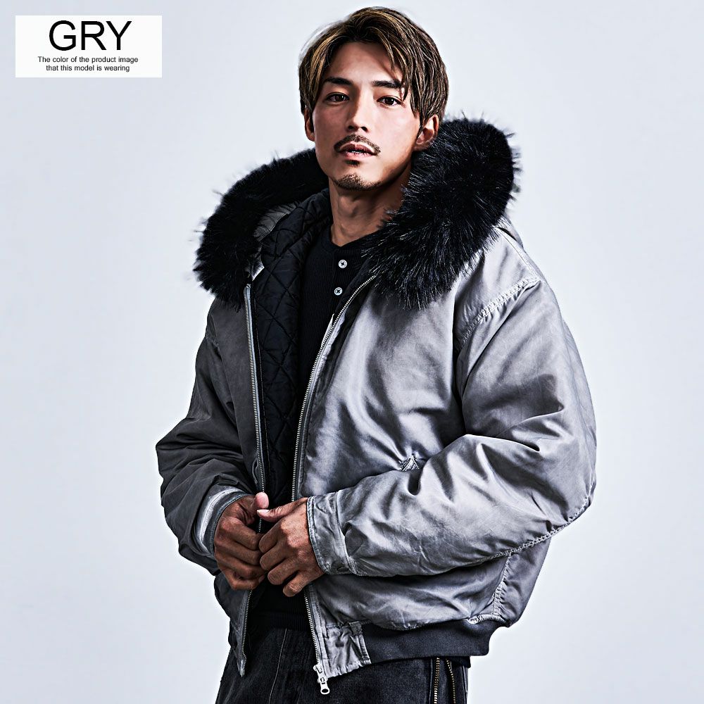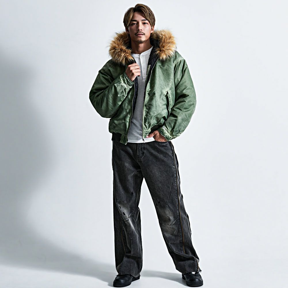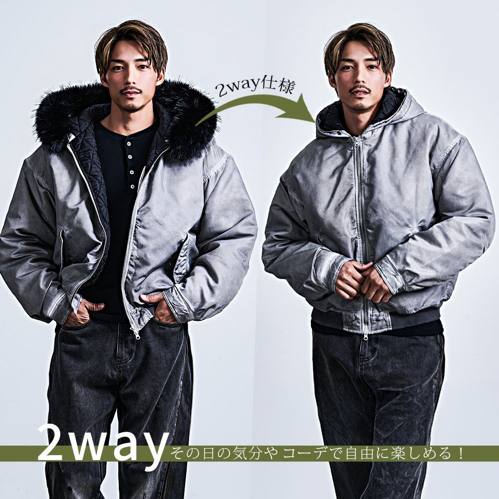 CavariA【キャバリア】ヴィンテージ加工ファー脱着フライトブルゾン/全3色