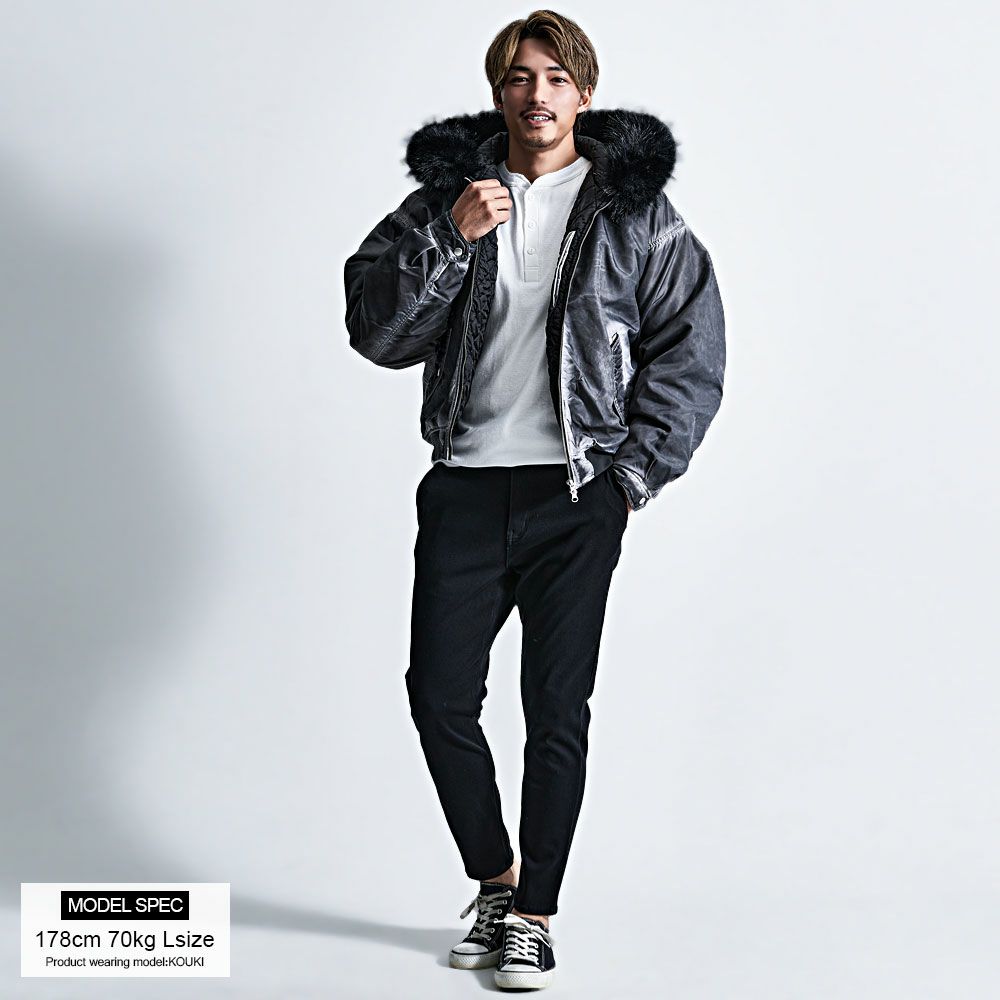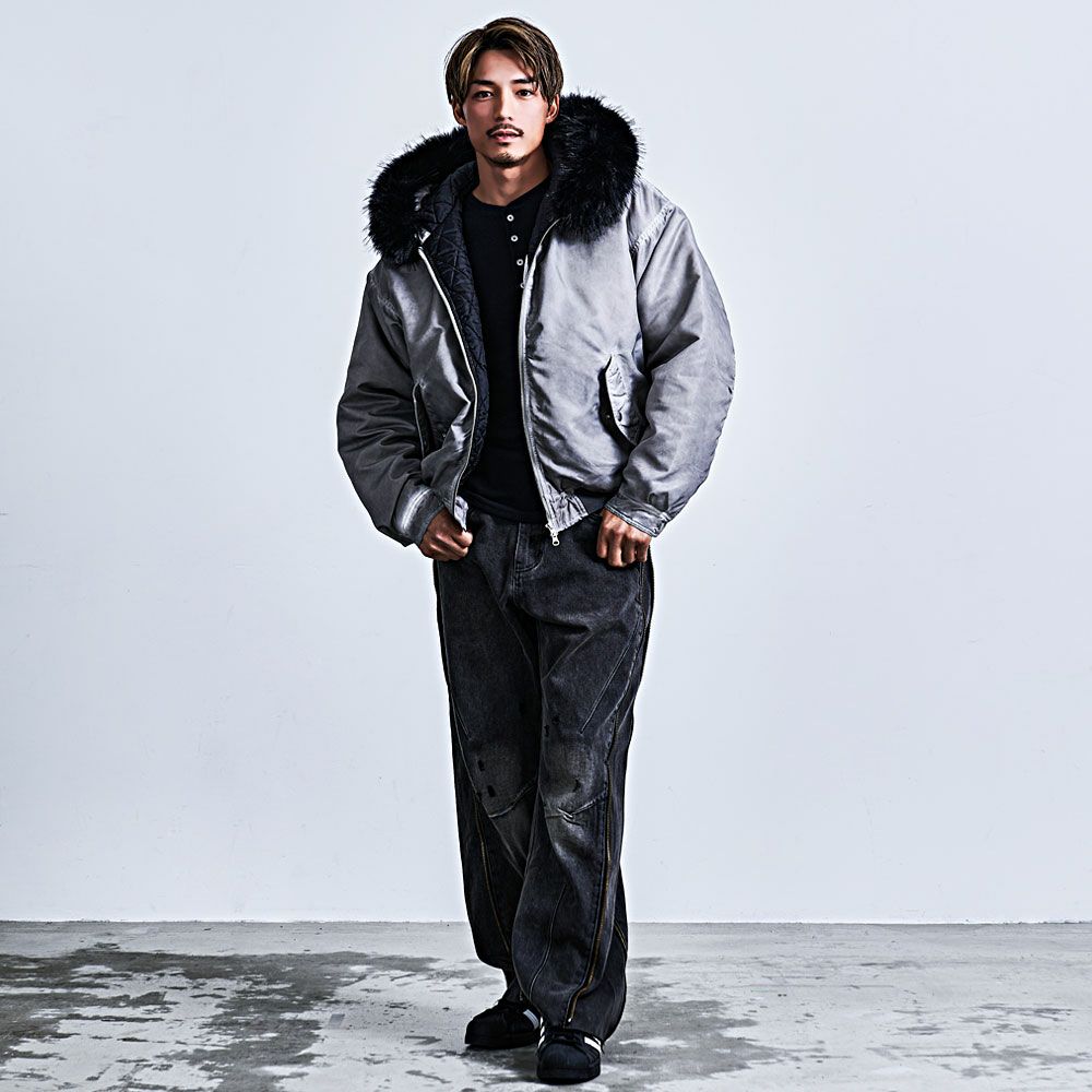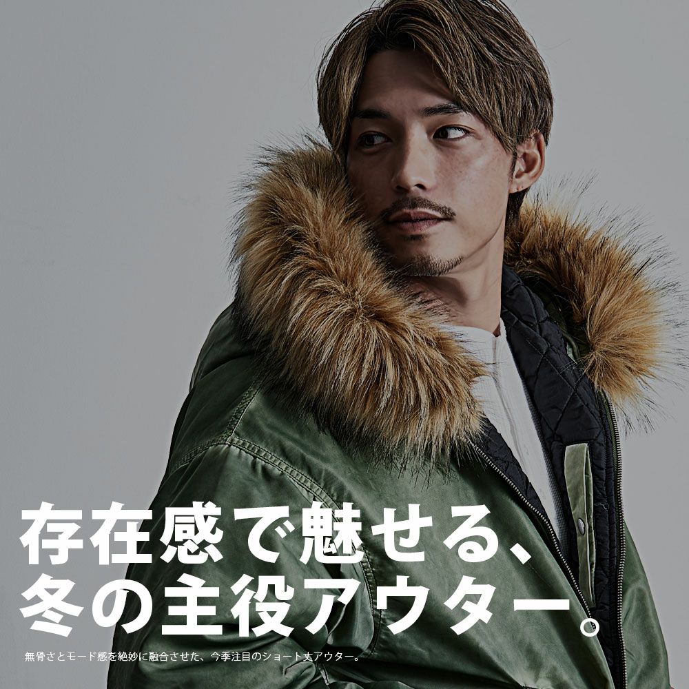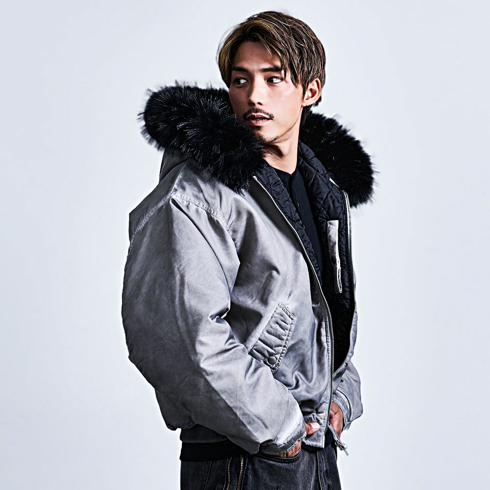 CavariA【キャバリア】ヴィンテージ加工ファー脱着フライトブルゾン/全3色