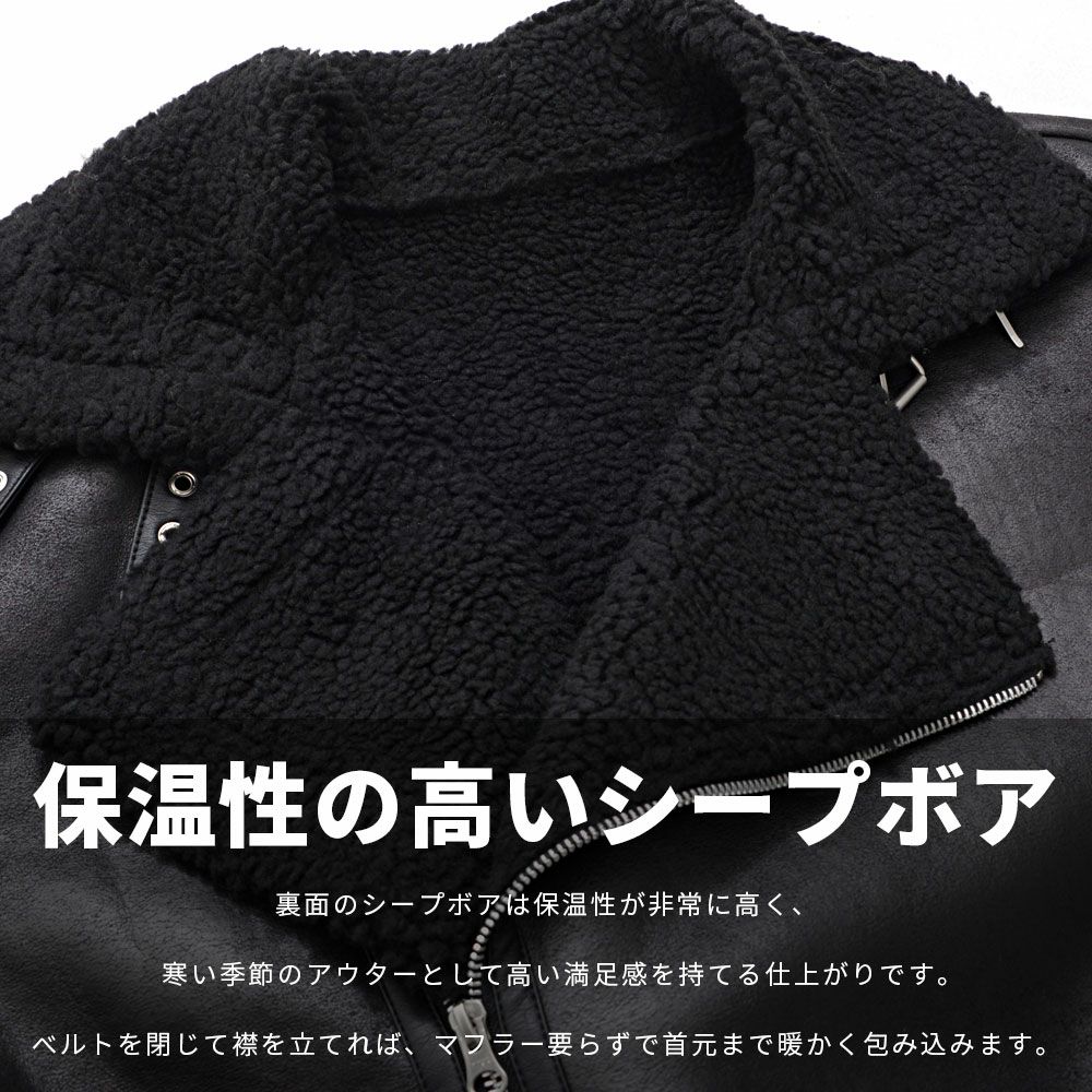 CavariA【キャバリア】ヴィンテージ加工ムートンダブルジャケット/全2色