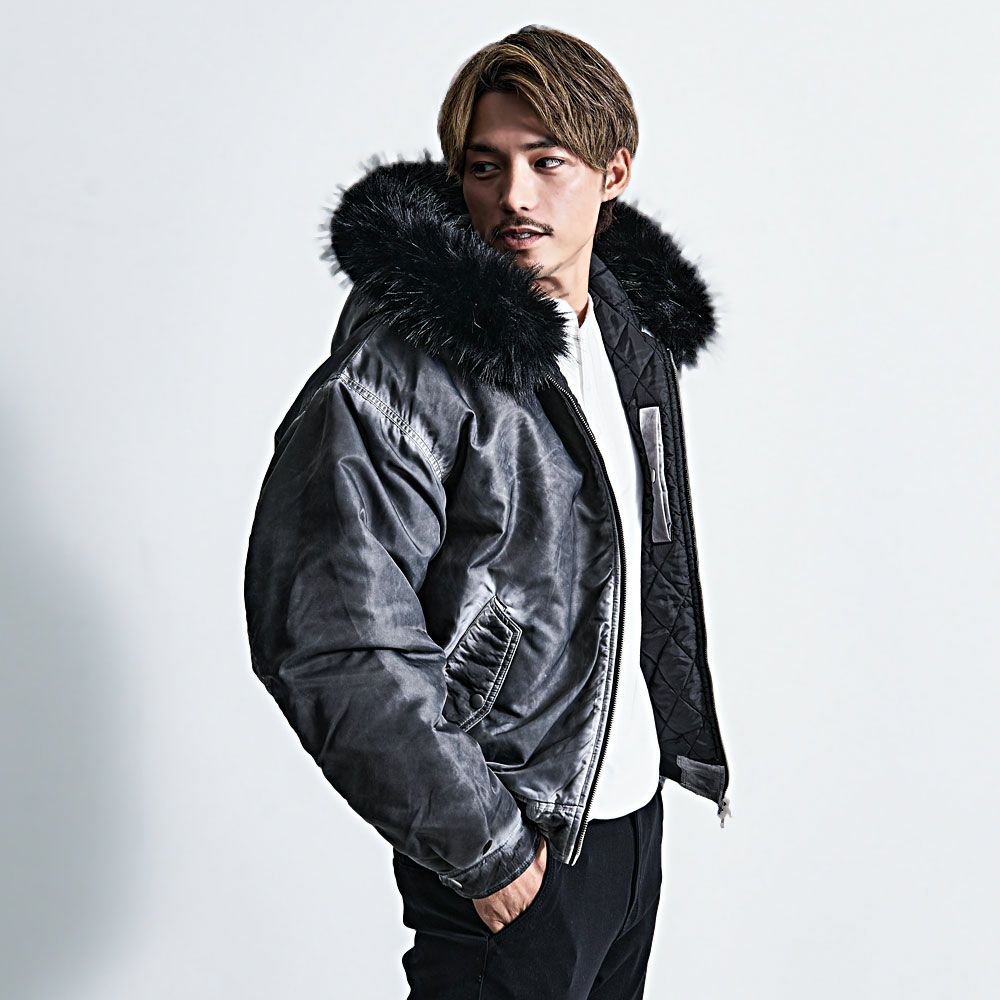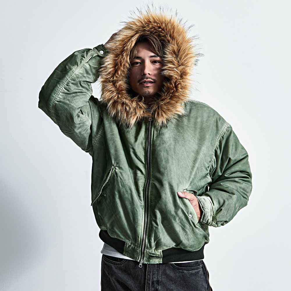 CavariA【キャバリア】ヴィンテージ加工フードボンバージャケット/全3色