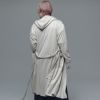 フェイクスエード素材を使ったフード付き変形ロングコートです。