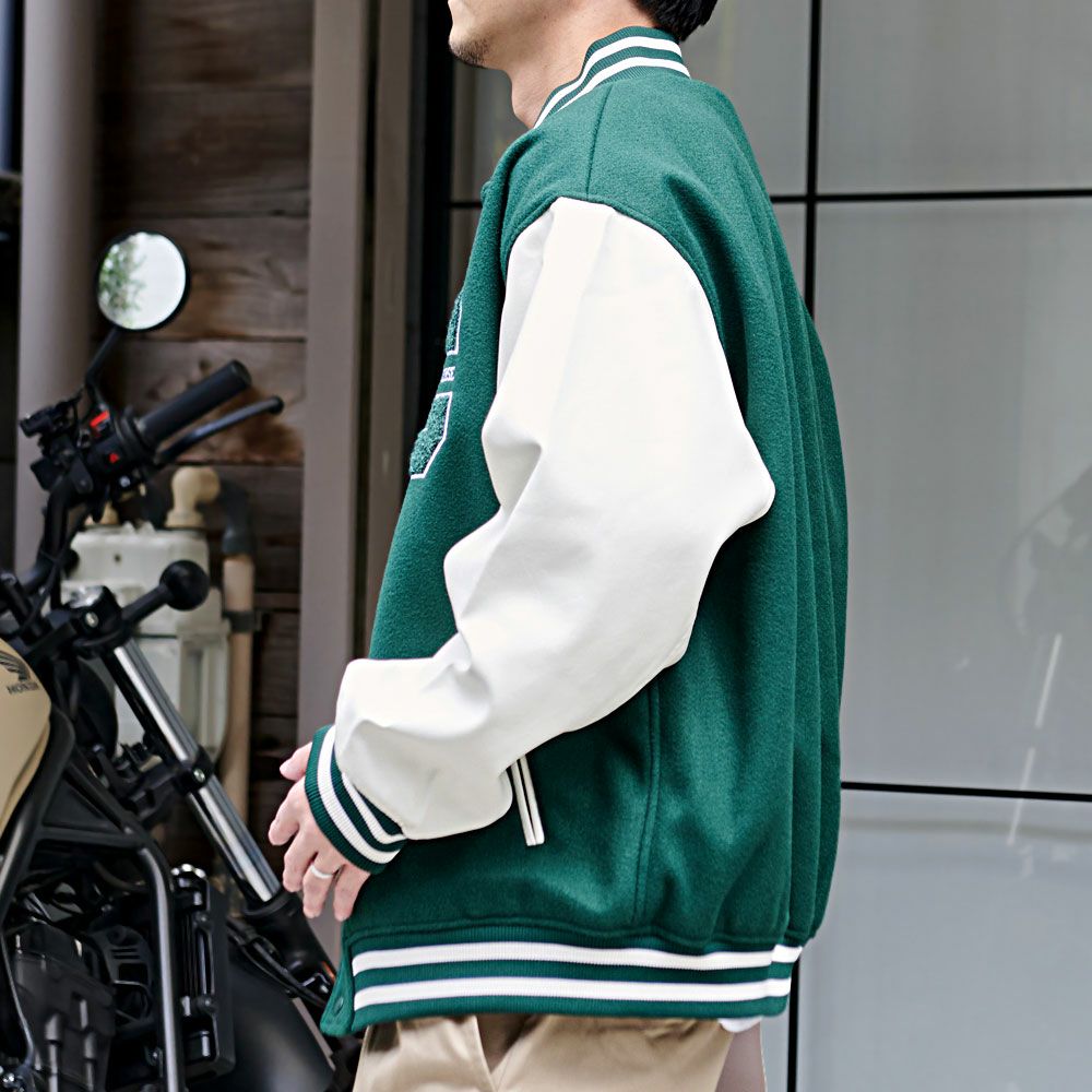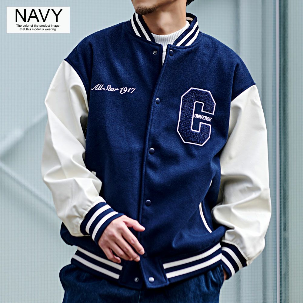 CONVERSE【コンバース】フェイクメルトン袖PUスタジアムブルゾン/全3色