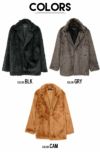 ふわふわと柔らかく毛足の長いファーを使用したフェイクファーコート。
