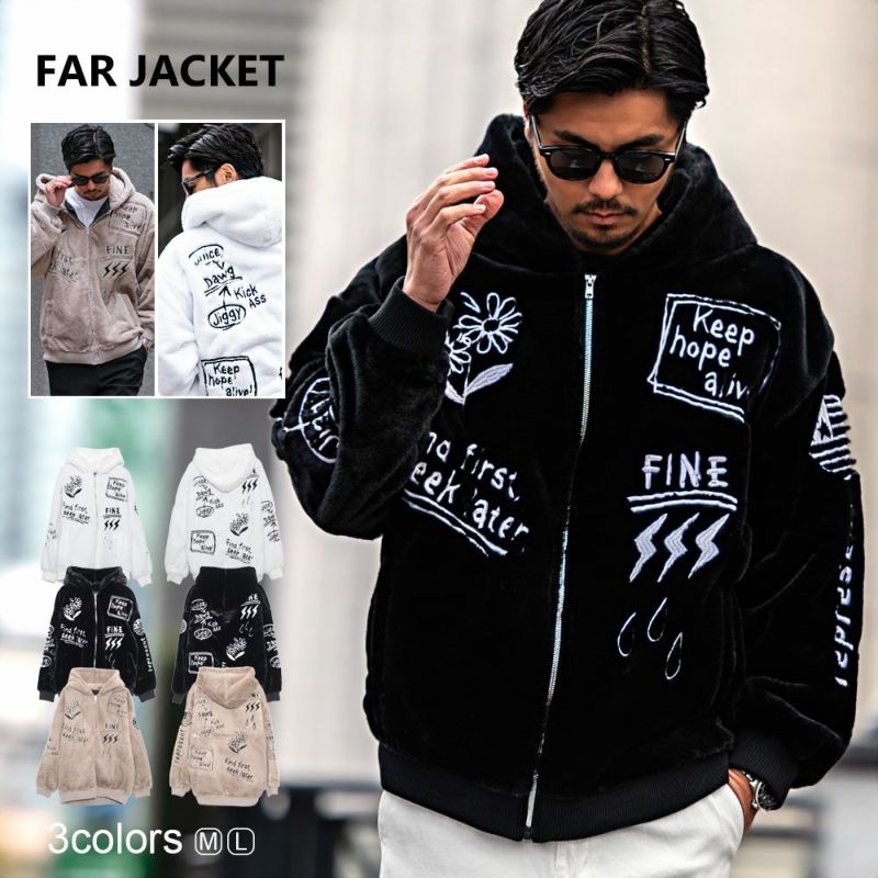 ジャケット メンズ ファージャケット メンズ ブランド おしゃれ 長袖 ボア 防寒 暖かい あったか 暖かい 落書き ラフガキ 大きいサイズ ゆったり ロゴ 刺繍 ユニセックス 上品 カジュアル ストリート ホワイト ブラック グレージュ 白 黒 服 春 秋 冬 秋冬 M L CavariA キャバリア 服 大人 男性 父の日 父の日ギフト 父の日プレゼント 20代 30代 40代 メンズファッション 東京 プレゼント 誕生日 記念日 贈り物 ギフト コーデ 上着 羽織り アウター 厚手 軽量 防風 防寒対策 柔らかい リラックスシルエット トレンド 男性用 秋服 冬服 メンズアウター メンズコート 防寒着 秋コーデ 冬コーデ 大人カジュアル プレゼント用 ギフト包装 ブランドファッション メンズスタイル ふわふわ モコモコ スタイリッシュ メンズアイテム