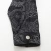 淡いカラーのデニムにペイズリー柄のダメージ加工を施したデザインジャケットです。