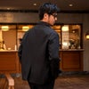 光沢感のある高級生地を使用し、上品なルックスと快適な着心地を両立させたテーラードジャケット&スラックスのセットアップ。