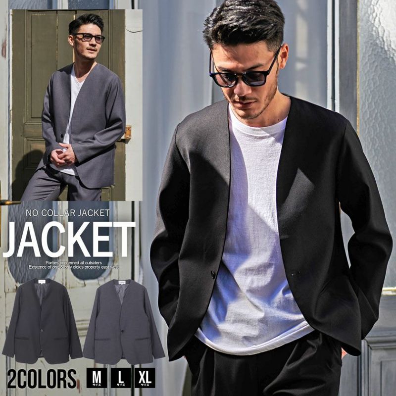 ジャケット メンズ おしゃれ 服 父の日 セットアップ可 ノーカラー テレワーク リモートワーク スリム 細身 タイト シンプル 上品 ブラック グレー 黒 灰 M L XL きれいめ CavariA キャバリア 秋 冬 春 春服 20代 30代 40代 ファッション メンズファッション 東京 プレゼント 誕生日 記念日 贈り物 ギフト