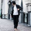 同素材のワイドパンツと合わせれば、統一感のあるセットアップスタイルが完成!