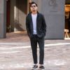 イタリアンカラーで大人っぽく上品な雰囲気に仕上げ、着る人を選ばない落ち着いた仕上がりに。
