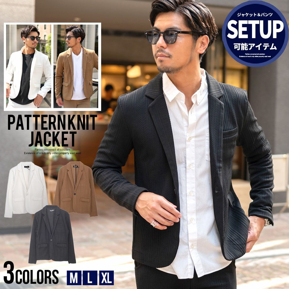 ジャケット メンズ おしゃれ ニットソー テーラードジャケット パターン柄 アウター ビジネス 大人 セットアップ可 長袖 カジュアル ホワイト ブラック ブラウン 黒 白 M L XL 服 男 男性 CavariA 服 春 秋 冬 ファッション 20代 30代 40代 父の日 東京 プレゼント 誕生日 記念日 贈り物 ギフト
