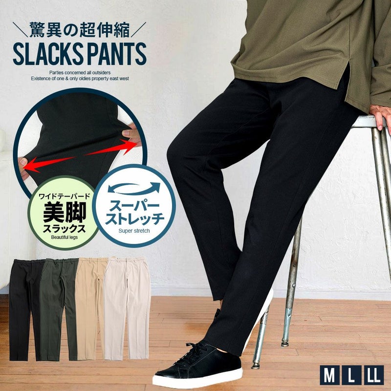 スラックス メンズ おしゃれ ストレッチ 伸縮 ワイドパンツ テーパードパンツ イージーパンツ ボトムス ズボン ブラック ホワイト チャコール ベージュ 黒 白 M LXL LL 春 夏 秋 冬 カジュアル きれいめ シンプル ストリート ストリート系 ストリートファッション 韓国 韓国系 韓国ファッション 下北沢 下北系 古着 古着系 90s 90年代 2000年代 Y2 アメカジ アウトドア スケーター ゴルフ ゴルフウェア ゴルフウエア ゴルフ用品 ユニセックス 服 無地 男性 男 父の日 父の日ギフト 父の日プレゼント 20代 30代 40代 メンズファッション 東京 プレゼント 誕生日 記念日 贈り物 ギフト