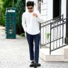 シャツ×ローファーで、上品なビジネスカジュアルに。