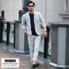 同素材のパンツと合わせたセットアップはもちろん、デニムパンツを合わせたキレイめな大人カジュアルスタイルもオススメ。