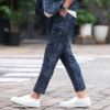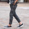 モノトーンで織りなされたモザイク柄が特徴的なアンクルパンツ。
