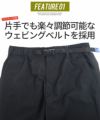 丈夫で動きやすく、ウエストはゴムと片手でも調節可能なウェビングベルトを装備。