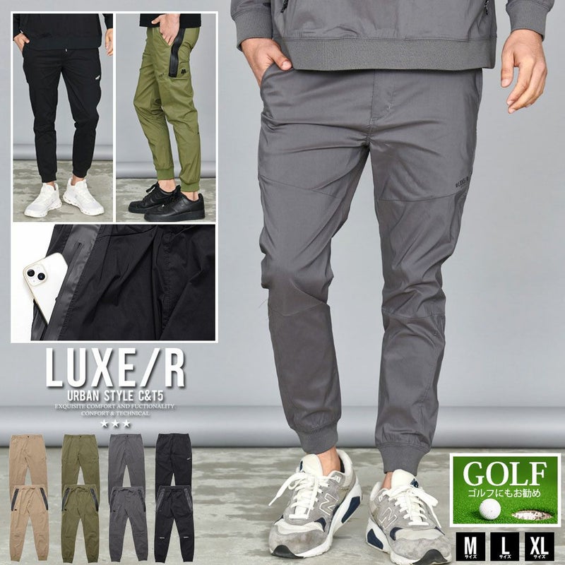 ジョガーパンツ メンズ ボトムス 布帛 ロゴ バックプリント 止水ジップ セットアップ可 タイト スリム ストレッチ ゴルフ ゴルフウェア ベージュ カーキ チャコール ブラック 黒 カジュアル ストリート スポーツ ユニセックス LUXE/R ラグジュ 20代 30代 40代 服 秋 冬 秋冬 男 男性 ファッション 東京 誕生日 記念日 贈り物 ジャージスタイル スポーツウェア スリムフィット 伸縮性パンツ スポーツミックス ランニングパンツ アクティブウェア カジュアルジョガー ウォーキングパンツ アウトドアパンツ シンプルデザイン メンズジョガー ジムウェア 高機能パンツ ライトウェイト ゴルフパンツ メンズタイトパンツ スポーティーパンツ カーキジョガー ジムトレーニングパンツ メンズカジュアルパンツ メンズアクティブ パフォーマンスポーツパンツ