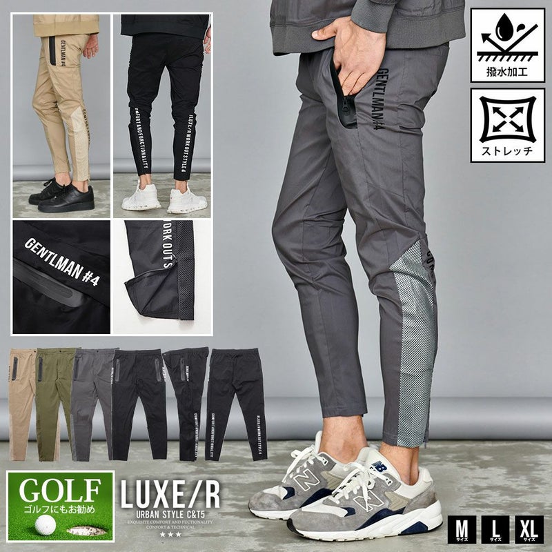 パンツ メンズ ボトムス おしゃれ ジャージパンツ ジョガーパンツ ストレッチ 伸縮性 撥水加工 ロゴ プリント 止水ジップ 細身 タイト スリム ゴルフパンツ スポーツ スウェットパンツ トレーニング ランニング LUXE/R ラグジュ ユニセックス 男性 男 服 春 春服 ファッション ゴルフ ゴルフウェア ゴルフウエア ゴルフ用品 男性 男 父の日 父の日ギフト 父の日プレゼント 20代 30代 40代 メンズファッション 東京 プレゼント 誕生日 記念日 贈り物 ギフト