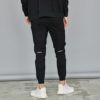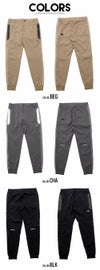 布帛素材を使用したテーパードシルエットのジョガーパンツ。