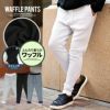 しっかりとした厚みと凹凸のある表面が特徴のワッフル生地を採用したイージーパンツ。