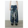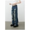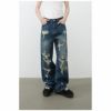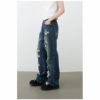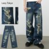 デニムパンツ メンズ おしゃれ ジーパン Gパン デストロイ ハードクラッシュ ブルー ストーンウォッシュ加工 擦り加工 髭加工 ジーンズ ワイドデニム デニム パンツ ワイドパンツ 脚長効果 色落ち ヴィンテージ 古着風 ビンテージ 韓国 個性的 Lazy Tokyo オールシーズン 20代 30代 40代 ユニセックス 男性 男 服 夏 夏服 ファッション 東京 プレゼント 誕生日 記念日 贈り物 ギフト