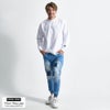 フロント部分は大胆でハードなダメージ加工に加え、丁寧なリペア(修繕)加工を施すことで、ラグジュらしいヴィンテージ感を表現。
