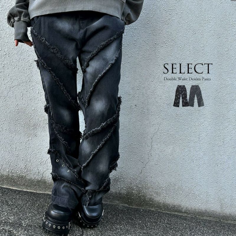 グランジ感を表現したWウエストワイドデニムパンツです。